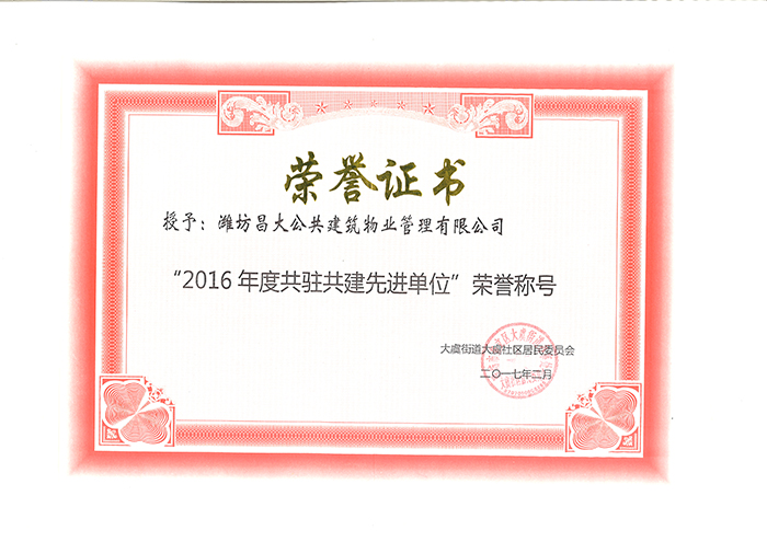 2016年度奎文區(qū)共駐共建先進(jìn)單位